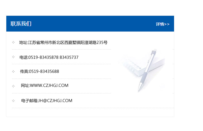 傳真:0519-83435688    郵編:213135    網(wǎng)址:WWW.czjhgj_com.zxhled.com    電子郵箱:JH@czjhgj_com.zxhled.com